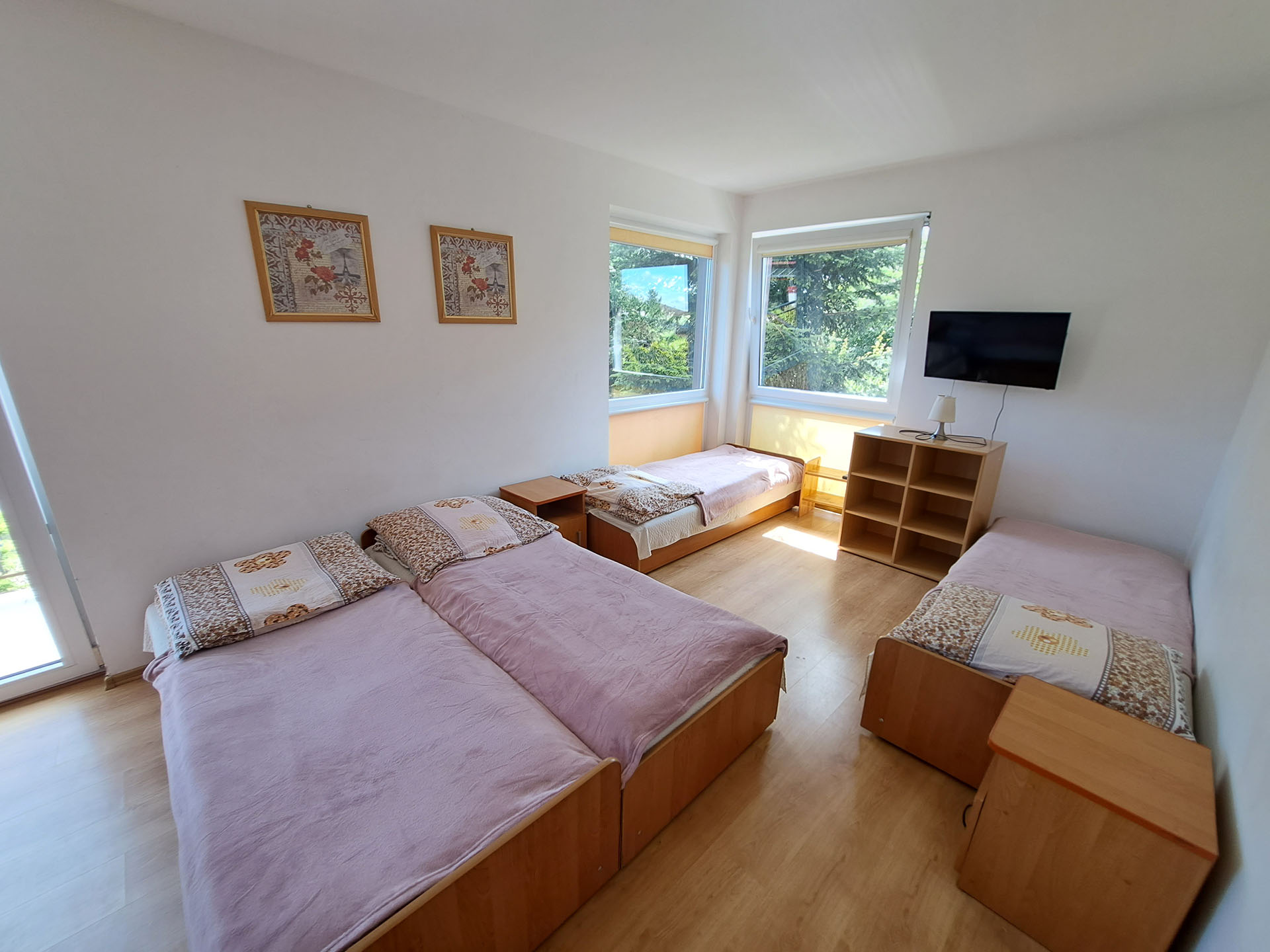 Oferujemy komfortowe pokoje 2-, 3- i 4-osobowe, wszystkie z prywatnymi łazienkami i telewizorami. Nasza baza noclegowa liczy 60 miejsc, dzięki czemu możemy gościć zarówno rodziny, jak i większe grupy.